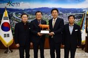 한민일보 서울포커스 김은금 기자 | 합천축산업협동조합(조합장 김용욱)은 10일 합천군을 방문해 합천군 농업기술센터 신청사 개청을 축하하며, 축산 홍보 및 현장 교육에 활용될 한우 모형을 기증했다. 이번에 기증된 한우 모형은 관람객의 시각적 이해를 돕는 교육자료로서 해당 모형은 합천군농업기술센터 1층 홍보관에 상시 전시되어 농업인 교육 프로그램, 학생 견학 및 지역 축산문화 홍보에 폭넓게 사용될 예정이다. 김용욱 조합장은 “신청사의 새로운 출발을 축하하는 마음을 담아 준비한 기증품이 합천군 축산업 교육·홍보 역량 강화에 보탬이 되길 바란다.”며 “앞으로도 축산웅군인 합천 축산업 발전을 위해 협동조합 본연의 역할을 성실히 수행하겠다.”라고 전했다. 김윤철 합천군수는 “귀중한 전시 자료를 기증해 주신 합천축협에 깊은 감사를 드린다.”며 “방문객들이 축산업을 보다 친근하고 정확하게 이해할 수 있도록 다양한 교육 콘텐츠와 함께 적극적으로 활용하겠다.”고 밝혔다. 합천군은 이번 기증을 계기로 홍보관의 전시 콘텐츠가 한층 강화되어, 지역 농업·축산업의 가치와 중요성을 효과적으로 전달할 수 있을 것으로 기대하고