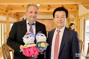 한민일보 서울포커스 김은금 기자 | 진주시는 지난 3일부터 6일까지(3박 4일) 지난해 진주시와 우호도시 교류의향서를 체결한 프랑스 ‘투레트(Tourrettes)시’의 ‘세바스티앙 모로(Sébastien Moreau)’ 부시장과 관계자들이 진주시를 방문했다고 밝혔다. 이번 방문은 진주시의 대표축제인 남강유등축제의 개최를 축하하고, 주요 문화예술 인프라와 두 도시 간 미술교류 확대 방향을 모색하기 위한 문화관람 및 교류 목적으로 이뤄졌다. 특히 지난 4일에는 조규일 진주시장과 ‘세바스티앙 모로’ 투레트 부시장이 진주성 중영에서 간담회를 가져 관심을 모았다. 이 자리에서 조 시장은 올해 3월 ‘투레트시 바이올렛축제(Fête des Violettes)’에서 4000개의 바이올렛 꽃으로 장식한 진주시의 관광캐릭터 ‘하모’와 진주를 대표하는 ‘유등’을 소개한 것을 비롯해 7월 이성자 화백의 ‘이젤’이 프랑스에서 진주로 안전하게 운송될 수 있도록 노력해준데 대한 감사를 전하고, 지속적인 협력을 약속했다. 이에 세바스티앙 부시장은 이성자 화백 아틀리에의 프랑스 정부 지정 ‘주목할 만한 현대 건축물’ 선정에 따른