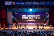 한민일보 서울포커스 박근원 기자 | 경상국립대학교는 10월 20일 오전 10시 가좌캠퍼스 GNU컨벤션센터 2층 대강당에서 개교 77주년 기념식을 개최했다. 개교기념식은 개식, 국민의례, 대학 연혁 보고, 개척시 낭송, 총장 기념사, 축사, 시상식, 비전 선포식, 교가 제창, 기념 촬영 등의 순으로 진행했다. 개교기념식 행사는 경상국립대학교 유튜브 채널을 통해 실시간 송출했다. 경상국립대학교는 기념식에서 각종 시상식[개척명예장, 총장 특별상, 개척한림원 표창, 7인의 영리서처(Young Researcher) 현판 수여, 장기근속상]을 마련하여 대학 발전에 기여한 교내·외 인사와 우수 연구자들의 공로를 기렸다. ▲개척명예장은 ㈜영남소방엔지니어링 류상수 대표에게 수여했다. 류상수 대표는 경상국립대학교 농업기계공학과를 졸업(1982년)했으며, 삼성공조(주), 안전보건공단 등을 거쳐 1996년에 ㈜영남소방엔지니어링에 입사 후 2005년 대표이사로 취임했다. 3월 14일 대학발전기금 1억 원을 출연하며 “나눔을 받아야 하는 대상은 많지만 모교 후배들의 장학을 위한 발전기금으로 기부하는 것이 무엇보다도 가치 있는 일이고,