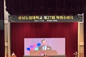한민일보 서울포커스 박덕환 기자 | 충남도립대학교 졸업생 344명이 배움의 시간을 마치고 지역과 사회를 향한 새로운 출발선에 섰다. 충남도립대학교는 11일 대학 해오름관 다목적실에서 ‘제27회 학위수여식’을 개최하고 전문학사와 학사 학위를 수여했다. 이날 행사에는 김태흠 충남도지사를 비롯해 정광섭 충남도의회 부의장과 도의원, 청양군수, 군의회 의장 등 주요 기관장이 참석했으며, 졸업생과 학부모, 교직원 등 450여 명이 함께해 졸업생들의 앞날을 축하했다. 무엇보다 올해 학위수여식은 도정을 책임지고 있는 김태흠 지사가 직접 참석해 졸업생 한 사람 한 사람의 출발을 응원했다는 점에서 의미를 더했다. 김태흠 지사는 격려사와 함께 전체 수석에게 표창을 수여하며 지역 인재에 대한 기대를 전했다. 김태흠 지사는 “충남도는 청년이 지역을 떠나지 않아도 되는 환경을 만들기 위해 산업과 일자리를 키우고 주거와 정주 여건을 지속적으로 개선하고 있다”며 “청년들이 이곳에 뿌리내리고 살아가며 미래를 설계할 수 있도록 기반을 더욱 단단히 다져 나가겠다”고 밝혔다. 그러면서 졸업생들에게 ‘수처작주