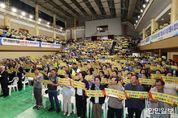 한민일보 서울포커스 박용남 기자 | 무주군이 지난 1일 무주예체문화관 대강당에서 농어촌 기본소득 시범사업 선정을 촉구하는 범군민 결의대회를 개최했다. 무주군이 주최하고 무주기본소득연대가 주관한 이날 결의대회는 기본소득 도입 필요성에 대한 군민 공감대를 형성하고 대내외에 무주가 기본소득 시범지역으로 최적지임을 알리기 위해 추진된 것으로, 황인홍 무주군수와 오광석 무주군의회 의장, 지역 내 기관·사회단체, 각 마을 이장·부녀회장 등 구심체들과 주민 등 1천여 명이 자리를 함께 해 의미를 더했다. 참석자들은 신재원 무주군농업기술센터 농업정책과 친환경농업팀장과 허동일 무주기본소득연대 대표로부터 ‘농어촌 기본소득 시범사업’ 추진 배경 및 취지 설명을 듣고 결의 퍼포먼스 등에 동참하며 ‘기본소득 유치’ 의지를 나타냈다. 또한 △무주군이 농어촌 기본소득 시범지역으로 선정될 수 있도록 모든 역량을 결집한다는 내용과 △농어촌 기본소득의 필요성과 효과를 적극 홍보해 군민 공감대를 넓혀간다는 내용, △중앙정부와 전북특별자치도는 무주군의 절박한 현실과 군민의 열망을 직시하고 무주군을 시범지역으로 선정하라는 내용을 담은