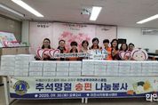 한민일보 서울포커스 박용남 기자 | 이천시 자원봉사센터는 지난 9월 30일 이천설봉라이온스클럽과 함께 사랑의 송편 나눔 행사를 개최하며 ‘2025년 추석맞이 집중 자원봉사 주간’에 동참했다. 설봉라이온스클럽은 매년 추석 명절을 즈음하여 송편 나눔 활동을 진행하고 있으며 이번 나눔은 이천시재가노인복지센터에서 돌보고 있는 어르신 50가구에 송편이 담긴 따뜻한 꾸러미를 준비해 전달하며 명절의 온정을 나눴다. 유미영 회장은 “어르신들의 추석 명절이 행복하길 바라는 마음으로, 작지만 정성을 다해 송편을 준비하여 전달했다”라며 “앞으로도 우리 회원들은 지역사회와 함께하는 봉사 및 나눔 활동을 꾸준하게 이어갈 계획”이라고 밝혔다. 이미선 센터장은 “따뜻한 정을 나눠주신 이천설봉라이온스클럽 회원들께 감사드린다”라며 “시민이 공감하는 ‘온기나눔’을 통해 더 많은 이웃이 따뜻한 명절을 보내길 바란다”라고 전했다.