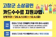 한민일보 서울포커스 박용남 기자 | 고창군이 관내 소상공인의 경영 부담 완화를 위해 오는 4월1일부터 예산 소진 시까지 ‘2026년 소상공인 카드수수료 지원사업’을 본격 추진한다고 밝혔다. 이번 사업은 전년도 연매출 3억원 이하 고창군 소재 소상공인을 대상으로 하며, 카드 매출액의 0.4%에 해당하는 카드수수료를 최대 50만원까지 지원한다. 특히, 해당 사업은 도비와 군비를 포함해 업체당 최대 30만원까지 지원되는 가운데, 고창군은 군비 20만원을 추가로 투입해 도내 타 시·군보다 확대된 최대 50만원까지 지원한다. 최근 중동 정세 등 대외 경제 불안에 따른 경기 침체와 소비 위축으로 어려움을 겪는 지역 소상공인의 경영 여건을 고려해 전년보다 1개월 앞당겨 조기 시행하며, 실질적인 경영 부담 완화에 중점을 두었다. 신청을 희망하는 소상공인은 사업장 소재지 읍·면 주민행복센터를 방문해 신청할 수 있으며, 자세한 사항은 고창군청 홈페이지 공고문을 통해 확인할 수 있다. 고창군수는 “소상공인은 지역경제의 근간이고, 이들의 회복이 곧 지역의 활력이다”며, “이번 지원사업이 경기침체로 어려움을