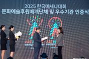 한민일보 서울포커스 박용남 기자 | 광주문화재단은 11월 11일 서울에서 열린'2025년도 문화예술후원매개단체 및 문화예술후원우수기관 인증식'에서 문화체육관광부와 한국문화예술위원회로부터 ‘문화예술후원매개단체 신규 인증서’를 수여받았다. 문화예술후원 인증제도는 문화예술분야 후원 활동을 촉진하거나 모범적으로 수행하는 단체·기관을 인증함으로써, 민간 후원 활성화와 공공 신뢰성 제고를 목적으로 2015년에 도입됐다. 올해는 신규인증 12곳, 재인증 11곳이 추가되어 총 80개 단체·기관이 인증을 유지하고 있다. 광주문화재단은 지역 기반의 메세나 사업 추진 체계와 기업·시민 참여형 후원 모델을 지속 운영해 온 점에서 높은 평가를 받았다. 이번 인증을 통해 광주문화재단은 ▲문화체육관광부 장관 명의 인증서 수여 ▲인증 마크 활용 ▲홍보 및 후원매개사업비 보조금 등 다양한 공적 지원을 받게 된다. 이를 바탕으로 지역 문화예술 후원 생태계를 더욱 체계적으로 확대해 나갈 계획이다. 배동환 광주문화재단 사무처장은 “이번 인증은 광주문화재단이 지역 문화예술 후원의 신뢰할 수 있는 후원매개기관으로 공식 인정받은 결과”라며