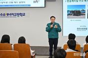 한민일보 서울포커스 박용남 기자 | 완주군의회 김재천 부의장이 지난 24일 수소에너지고등학교에서 실시된 채용 후보자(장학생) 선발 제도 설명회에 참석해 수소고등학교 학생들을 격려하고, 수소에너지고등학교 교장과 한솔케미칼 관계자 등과 함께 취업 연계방안에 대해 논의를 이어갔다. 또한, 김 부의장은 지역 산업과 교육 현장을 잇는 가교 역할을 수행하며 추진한 산학협력이 우수인재 양성과 지역정주 지원 강화라는 실질적 성과를 확인하고, 확대방안을 모색했다. 김재천 부의장의 중재와 지속적인 협의를 통해 체결된 한솔케미칼 전주공장과 수소에너지고등학교 간 업무협약(MOU)이 본격 시행되면서, 수소에너지고 학생들의 안정적인 진로 설계와 취업 기회가 크게 확대됐다. 특히 지난 2024년도 체결한 협약에 올해에 이어 2026학년도 신입생부터 매년 4명의 장학생을 선발하고, 이 가운데 2명의 우수 인재를 한솔케미칼에서 채용하는 체계적인 취업 연계 모델이 가동된다. 이는 교육–장학–채용으로 이어지는 선순환 구조를 통해 지역 우수인재를 체계적으로 양성하고, 졸업 후 지역 내 정주를 유도하는 데 초점을 맞추고 있다. &nbs