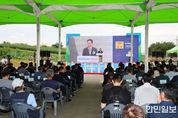 한민일보 서울포커스 박용남 기자 | 전남 무안군은 24일 전남서남부채소농협에 첨단 AI 자동화 설비기술의 현장 실증을 위해 구축한 ‘농산물 산지유통 실증센터’ 개소식을 성황리에 개최했다. 이날 개소식에는 김산 군수와 이태문 농림축산식품부 정책보좌관을 비롯해 한국로봇융합연구원, 한국생산기술연구원 등 연구기관 관계자와 전국 각지에서 모인 농협 조합장 등 200여 명이 참석해 센터 개소를 축하하며, 향후 운영 방향에 대한 기대감을 나눴다. 개소식은 △개식 선언 △주요 내외빈 소개 △기념사 및 축사 △홍보영상 및 경과보고 △기념 버튼식 △현장 시연 순서로 진행됐다. 2022년 농식품부 공모사업인 ‘고부가가치식품기술개발사업(국비 207억 원)’ 수행을 위해 구축된 실증센터는 국내 스마트 표준모델로 구축된 신규 APC사업과 연계해 지상 2층의 실증센터 1개 동(1,747㎡)과 저장시설 2개 동(1,658㎡) 규모로 현경면 평산리에 조성됐다. 농산물 산지유통 실증센터는 ▲ AI 기반 농산물 자동 선별․파렛타이징(포장) 시스템 적용 ▲ 자동화 물류 구축 R&D 실증화 지원 ▲ 무인지게차․청소로봇 설비 활용 및 각