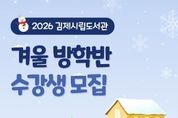 한민일보 서울포커스 박용남 기자 | 김제시립도서관은 겨울방학을 맞아 관내 초등학생을 대상으로 겨울 독서교실과 겨울 방학반 프로그램을 오는 2026년 1월 12일부터 2월 13일까지 운영한다고 밝혔다 이번 프로그램은 방학 기간 동안 전문 강사 선생님들과 함께 다양한 주제를 직접 체험해 볼 수 있도록 구성됐다. 겨울 독서교실은 2026년 1월 12일 월요일부터 1월 16일 금요일까지 5일간 오전 9시부터 12시까지 시립도서관 5층 배움터 3에서 진행된다. “나는 누구? 여긴 어디? 난, 충분히 멋져!라는 주제로 진행되며 참가대상은 관내 초등학교 2학년부터 5학년까지이며, 총 25명을 홈페이지를 통해 선착순 모집한다. 또한 추가로 예비 인원 5명을 후보로 선정할 예정이다. 겨울 방학반은 2026년 1월 19일 월요일부터 2월 13일 금요일까지 오전 9시 30분부터 11시 30분까지 시립도서관에서 진행되며“동화요리”, “우리집 소품 만들기”, “창의 미술”, “3D펜”등 10개 강좌로 진행된다. 참가대상은 관내 초등학교 1학년부터 6학년까지이며 과목당 10명 정도로 홈페이지를 통해