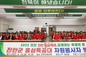 한민일보 서울포커스 박용남 기자 | 진안군은 19일 오후 군청 강당에서 ‘2025 진안홍삼축제 자원봉사자 발대식’을 열고 본격적인 활동에 들어갔다. 이날 발대식에는 전춘성 진안군수와 이재동 (사)진안군자원봉사센터 이사장을 비롯해 성인·청소년 자원봉사자 150여명이 참석했다. 행사에서는 자원봉사자가 직접 제작한 진안홍삼축제 홍보 릴스영상 상영, 자원봉사자 결의문 낭독, 자원봉사자 교육 등이 진행돼 축제 준비의 열기를 더했다. 이번 발대식은 축제를 성공적으로 이끌어갈 자원봉사자들이 한자리에 모여 사기를 높이고 각오를 다지는 자리로, 축제 분위기를 한층 고조시켰다. ‘홍삼특공대’ 자원봉사단은 성인과 청소년 150여명으로 꾸려져 축제 기간 동안 체험부스 운영, 교통 안내, 환경 정비, 방문객 환영 등 다양한 분야에서 활동한다. 단순 지원을 넘어 진안의 얼굴이자 홍보대사 역할을 수행할 예정이다. 전춘성 군수는 “진안홍삼축제는 자원봉사자 한 분 한 분의 땀과 헌신으로 완성된다”며 “여러분의 활약이 관광객에게 감동과 좋은 기억으로 남을 것”이라고 말했다. 이재동 이사장은 “봉사는 작은 수고가 모여