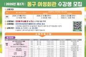 한민일보 서울포커스 백진욱 기자 | 인천 동구는 오는 3월 9일~4월 3일까지‘2026년 제2기 동구 여성회관’ 수강생을 모집한다고 밝혔다. 오는 4월 1일부터 3개월 과정으로 진행되는 제2기 정규강좌 프로그램은 ▲실내인테리어(도배 및 필름) ▲등라탄공예 ▲요리·공예 프로그램 등 총 26개 과정으로 운영되며, 직장인을 위한 바리스타 2급 야간반 및 퇴근 후 ‘뚝딱 반찬’ 등 야간 강좌도 운영될 예정이다. 또한 브런치 만들기 강좌를 1개월 단기 특강으로 운영해 주민들이 부담 없이 참여할 수 있도록 구성했으며, 일일 무료 특강으로는 ▲핸드드립&퓨전떡 만들기 ▲딸기도지마롤케이크 만들기 ▲패션도식화(옷그리기) 특강이 준비된다. 수강 신청은 인천시 거주자를 대상(동구 주민 우선)으로 여성회관 홈페이지를 통해 선착순 접수하며 온라인 접수에 어려움을 겪는 자, 동구사랑상품권, 평생교육 바우처 사용자는 여성회관으로 방문하여 신청할 수 있다. 김찬진 동구청장은“여성회관 교육 프로그램이 주민들의 자기계발과 역량강화에 실질적인 도움이 되기를 희망한다”며 “여성뿐 아니라 남성 수강생도 많은 문의와 참여를 바란다”고 말했
