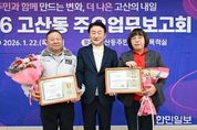한민일보 서울포커스 심기옥 기자 | 의정부시 고산동주민센터는 1월 22일 주민센터 2층 다목적실에서 ‘2026년 주요업무보고회’를 개최했다. 이번 보고회는 ‘주민과 함께 만드는 변화, 더 나은 고산의 내일’을 주제로 지역 주민과 내빈 등 100여 명이 참석한 가운데 2025년 추진 경과 및 2026년 중점 추진 사업을 주민과 함께 공유하기 위해 마련됐다. 행사는 주민자치센터 수강생의 식전공연을 시작으로 ▲새해 인사 및 덕담 ▲지역발전 유공자 표창장 수여 ▲주요 업무 보고 ▲주민과의 대화 순으로 진행됐다. 고산동장은 주요업무 보고를 통해 ▲고산동 신설 ▲물류센터 부지 공공주택 공급 전환 ▲대형유통시설 입접 관련 협약 ▲아이돌봄시설 클러스터 시범사업 ▲학생 통학버스, 똑버스 등 대중교통 개선 및 나눔주차장 조성을 통한 교통환경 개선 등 생활밀착형 사업의 추진 경과를 공유했다. 또, ▲디자인도서관 조성 ▲민락TG 우회도로 개설 ▲법조타운 조성 ▲고산지구 제3공영주차장 조성 ▲주민커뮤니티 공간 조성 ▲민관협력, 모두가 돌보는 온(on)마을 공동체 사업 등 2026년 진행 예정인 핵심 사업을 설명하며 주민과