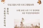 한민일보 서울포커스 유돈상 기자 | 금산인삼고을도서관은 프로그램 수강생들의 학습 성과물에 대한 성취감 고취와 지역 주민 문화 향유 기회 제공을 위해 오는 30일 금산읍 청산회관에서 ‘가을밤, 시와 음악에 물들다’ 행사를 개최한다. 이날 도서관 독서문화프로그램 ‘시와 함께 소리 찾기’ 수강생 시 낭송 공연 및 문화예술동아리 지원사업으로 운영 중인 금산만돌린챔버 수강생 만돌린 공연 등이 개최된다. 또한, 박인숙 인문학 강사의 ‘시를 노래하다’ 특강이 펼쳐진다. 금산인삼고을도서관 ‘가을밤, 시와 음악에 물들다’ 행사에 관한 자세한 내용은 금산다락원 도서관팀에 문의하면 된다. 도서관 관계자는 “2021년 이후 만 4년 만에 개최되는 발표회를 열게 됐다”며 “그동안 프로그램 참여를 통해 기량을 익힌 수강생들의 성과를 보여주는 자리가 될 것”이라고 말했다.