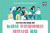 한민일보 서울포커스 유돈상 기자 | 논산시는 오는 5월 15일까지 ‘2027년도 예산편성을 위한 주민참여예산 제안사업 공모’를 진행한다. 공모에 참여하고자 하는 시민은 제안신청서를 작성해 논산시청 누리집과 우편으로 제출하거나 논산시청 예산실, 읍·면사무소 및 동 행정복지센터를 방문해 접수하면 된다. 제안된 사업은 관련 부서 검토와 시민 투표, 주민참여예산위원회 심의를 거쳐 2027년도 예산편성에 반영될 예정이다. 시는 선정된 사업이 투명하고 실효성 있게 추진될 수 있도록 지속적인 모니터링도 병행한다. 시 관계자는“시민이 제안한 아이디어가 실제 정책으로 실현되는 논산을 만드는 큰 힘이 될 것”이라며 “지역의 미래를 함께 만들어간다는 마음으로 많은 관심과 제안을 부탁드린다”고 말했다. 한편, 논산시는 예산편성 과정에 대한 시민의 이해도를 높이고, 공모 참여를 돕기 위해 지난 3월 15개 읍면동을 순회하며 ‘주민참여예산학교’를 운영했다. 지난해에는‘2026년도 주민참여예산사업 공모’를 통해 ▲학교 앞 도로 LED 로고라이트 설치 ▲ChatGPT 교육 ▲맨발걷기길 조성 등 총 206건, 약