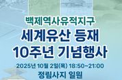 한민일보 서울포커스 유돈상 기자 | 부여군은 오는 10월 2일 정림사지 일원에서 ‘백제역사유적지구 세계유산 등재 10주년 기념행사’를 개최한다고 밝혔다. 2015년 독일 본에서 열린 제39차 세계유산위원회에서 백제역사유적지구가 한국의 12번째 유네스코 세계유산으로 등재되며 찬란했던 백제 문화를 전 세계에 알리는 역사적인 발걸음을 내디뎠다. 군은 그 뜻깊은 순간을 지역 주민을 비롯한 많은 이들과 함께 기념하고, 10년간 걸어온 발자취를 돌아보며 앞으로의 10년, 100년을 향한 새로운 도약의 뜻을 다지고자 이번 행사를 준비했다. 먼저 식전 행사로는 세계유산의 빛나는 가치를 국악으로 표현한 부여군충남국악단의 ‘세계유산의 빛, 백제의 소리’ 공연과 관내 어린이를 대상으로 사전에 개최된 부여군 어린이 세계유산 그리기 대회의 시상식이 진행된다. 공식 행사로는 세계유산 등재 10주년 축하 퍼포먼스와 정림사지 오층 석탑의 아름다움을 한껏 느낄 수 있는 미디어아트 공연이 펼쳐지고, 이후 인기가수인 10CM와 국카스텐의 축하공연이 이어져 가을밤을 뜨겁게 달굴 예정이다. 또한, 세계유산 등재 10주년 축