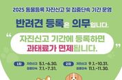한민일보 서울포커스 유돈상 기자 | 금산군은 10월 31일까지 동물등록 자진신고 기간을 운영한다. 동물등록제는 동물보호법에 따라 유실·유기 동물의 발생을 예방하고 성숙한 반려동물 문화 정착을 위해 시행 중인 제도다. 가정이나 그 외 장소에서 기르는 2개월령 이상의 개는 반드시 관할 지자체에 동물등록을 해야 하며 소유자 정보나 등록 동물에 대한 변경 사항이 발생할 경우 30일 이내에 변경 신고를 해야 한다. 단, 대행 동물병원이 없는 금산읍 외 지역은 동물보호법에 따라 동물등록 의무에서 제외된다. 자진신고 기간 내에 등록 또는 변경 신고를 완료하면 과태료가 면제되지만 이를 이행하지 않으면 최대 100만 원 이하의 과태료가 부과될 수 있다. 동물등록은 반려동물과 함께 관내 동물등록 대행 동물병원을 방문해 진행할 수 있다. 금산군의 등록 대행 동물병원은 우신동물병원, 하나동물병원, 제일동물병원 3곳이다. 등록 수수료는 내장형 1만 원이며 등록칩 가격과 시술비용은 병원별로 다를 수 있다. 이 외에도 군은 생후 5개월령 이상의 실외사육견(마당개)을 대상으로