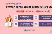 한민일보 서울포커스 유한희 기자 | 대전시교육청은 2026년 대전 교육 정책 학부모 모니터를 4월 2일부터 9일까지 각급 학교 학부모를 대상으로 모집한다고 밝혔다. 대전 교육 정책 학부모 모니터단은 교육 정책 전반에 대한 학부모의 다양한 의견을 체계적으로 수렴하여 정책에 반영하고, 교육 공동체 간 소통을 활성화함으로써 정책에 대한 이해도를 높이기 위해 운영하고 있다. 이를 통해 교육 수요자의 요구와 현장의 목소리를 반영한 공감형 교육 정책 추진을 도모하고 있다. 지난해에는 학부모 875명으로 대전 교육 정책 학부모 모니터단을 구성하여 ‘사전 정보 공표 운영 만족도 조사’ 등 총 17건의 대전 교육 정책 관련 온라인 설문 조사를 실시했다. 조사 결과를 면밀히 분석하여 정책 개선에 43건을 반영했으며, 모니터단 활동에 적극 참여한 우수 학부모 모니터 27명에게 교육감 표창을 수여했다. 학부모 모니터는 대전 교육 정책에 관심이 있는 학부모라면 누구나 지원할 수 있다. 모니터단으로 선정된 학부모는 4월부터 내년 2월까지 활동하며 ‘IB 프로그램에 대한 인식 및 요구 조사’ 등 총 17개 대전 교육 정책 전반에 대한 온