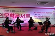 한민일보 서울포커스 유현민 기자 | 하남문화원은 2025년 11월 13일 오후 2시, 하남문화원 대강당에서 인문학 콘서트 '인공지능의 시대, 예술은 어디로 가는가?'를 성황리에 개최했다. 올해로 19번째를 맞은 이번 행사는 급격히 변화하는 인공지능 시대 속에서 예술의 본질과 인간 창의성의 의미를 성찰하기 위해 기획됐었다. 이날 특강은 2024년 문화대학 특강 예술, 달라진시선-포스트모더니즘 쉽게 이해하기 주제로 명강연으로 큰 호응을 얻었던 홍광수 작가가 맡아, 생성형 AI가 예술 창작 과정에 미치는 영향과 예술의 본질적 가치가 무엇인지에 대해 깊이 있는 강연을 펼쳤다. 홍 강사는 “AI가 만들어내는 작품이 늘어나고 있지만, 예술을 통해 감동을 주는 힘은 여전히 인간의 내면에서 비롯된다”고 강조하며 기술과 예술의 미래 관계에 대해 다양한 관점을 제시했다. 특강 후 이어진 현악 4중주 연주팀 ‘스트링 콸텟(String Quartet)’의 공연은 인문학 콘서트의 주제와 긴밀히 연결되며 깊은 인상을 남겼다. 이번 무대는 ‘기술이 대체할 수 없는 인간적 감성’을 음악으로 표현하는 데 초점을 맞추어 기획됐다. 현장에서 연주된 ‘Gab