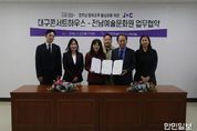 한민일보 서울포커스 임경복 기자 | 대구문화예술진흥원 대구콘서트하우스는 4월 23일 전남예술문화원(대표 마윤미)과 영호남 문화교류 활성화를 위한 업무협약을 체결했다. 이번 협약은 영호남 지역 간 문화균형과 상생을 도모하기 위해 추진됐으며, 전남 순천에 소재한 전남예술문화원과의 협력을 통해 대구(영남)와 호남권을 아우르는 예술인 교류 기반을 확대하고자 한다. 대구콘서트하우스는 지난해 여수 (사)한국음악교육문화원과 업무협약을 체결하며 교류 기반을 마련했으며, 그 성과로 ‘앙상블 여수’가 지난 3월 대구콘서트하우스 앙상블 페스티벌에 출연했다. 또한 오는 6월에는 대구 지역 앙상블 단체가 여수에서 공연을 펼칠 예정이다. 이러한 교류는 전남 지역 전반으로 확대되어, 카메라타 전남이 지난 3월 대구콘서트하우스에서 공연을 선보였고, 이어 대구성악가협회가 4월 광주 국립아시아문화전당에서 오페라 갈라 콘서트를 개최하며 상호 교류를 이어갔다. 이처럼 여수를 시작으로 전남 전역으로 확장된 교류는 영호남을 잇는 음악 네트워크로 발전하고 있으며, 양 지역 음악인 간 협력과 문화적 소통을 더욱 강화되는 계기가 될 것으로 기대된다. &n