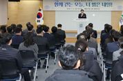 한민일보 서울포커스 임경복 기자 | 청양군은 2일 청양군 문화예술회관에서 시무식과 함께 전 직원이 참여하는 청렴 결의대회 및 반부패·청렴 공직문화 확산을 위한 ‘청렴 Hi-5 캠페인’을 실시했다고 밝혔다. 이날 결의대회에서는 전 직원이 함께 ‘부정청탁 및 금품 등 수수 금지 서약서’를 낭독하며, 공직자로서 청렴한 자세와 책임 있는 실천 의지를 다졌다. 또한 시무식에 앞서 문화예술회관 대공연장 앞에서는 청렴 Hi-5 캠페인이 진행됐다. 김돈곤 군수와 부서장들은 시무식에 입장하는 직원들과 하이파이브(High five)를 나누며 소통과 청렴의 뜻을 함께하고, 청렴 응원 물품과 ‘청렴 응원 빵’을 전달하며 직원들을 격려했다. ‘청렴 Hi-5 운동’은 ▲존중 ▲소통 ▲준수 ▲금지 ▲책임 등 5가지 핵심 가치를 바탕으로 한 실천운동이다. 아울러 10가지 실천과제(▲상호 존칭 사용 ▲갑질·을질 없는 직장 ▲업무 바꿈의 날 ▲청렴 톡톡 ▲출근·퇴근·중식 시간 준수 ▲민원 처리기한 준수 ▲향응·수수 금지 ▲허위 수당 수령 금지 ▲음주·난폭운전 금지 ▲권한에는 책임, 비용은 내돈내산)를 추진하며, 기관장과 직원, 부서장과 직원이
