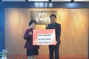 한민일보 서울포커스 임경복 기자 | 양주시가 31일 ㈜스포플렉스로부터 연말을 맞아 이웃돕기 성금 100만 원을 기탁받았다. 이날 기탁식에는 남병태 대표가 참석했으며, 기탁된 성금은 경기 사회복지공동모금회를 통해 양주시 취약계층 지원에 사용될 예정이다. 남병태 대표는 “연말을 맞아 지역의 어려운 이웃들에게 작은 힘이라도 보태고 싶었다”며 “앞으로도 지역사회와 함께하는 기업으로서 나눔을 이어가고 싶다”고 말했다. 시 관계자는 “㈜스포플렉스의 따뜻한 기부에 감사드리며, 기부금이 꼭 필요한 곳에 잘 전달돼 많은 분들에게 힘이 될 수 있도록 최선을 다하겠다”고 전했다. 한편 광적면에 소재한 ㈜스포플렉스는 헬스기구 제조업체로, 사회적 책임을 실천하며 나눔 활동에 동참하고 있다.
