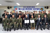 한민일보 서울포커스 임경복 기자 | 광주광역시체육회(회장 전갑수)는 5일 14시 체육회관 2층 중회의실에서 육군특수전사령부 황금박쥐부대(여단장 조웅)과 업무협약을 체결했다고 밝혔다. 협약은 과학적 체력측정을 통해 부대원 훈련의 효율성과 객관성을 높이고 군 전투역량을 체계적으로 강화하는 동시에, 민·군이 협력하여 지역사회에 기여하고 사회공헌 활동을 확대하기 위해 마련됐다. 협약내용으로는 스포츠과학연구원의 전문성을 활용한 △과학적 체력관리 지원 △전투형 강군 육성의 과학화를 위한 체육 혁신정책 발굴 △체력측정 결과 분석을 통한 훈련 효과 정량적 평가 등이다. 전갑수 체육회장은 “체력은 국가를 지키는 가장 기본적인 힘이며 체육은 국민의 건강을 증진시키고 대한민국의 위상을 높이는 자산”이라며 “이번 업무협약을 통해 대한민국 정예 전투력의 산실인 공수특전여단과 연대를 바탕으로 다양한 체육 혁신정책 등을 발굴하여 지원하겠다.”라고 인사말을 전했다.