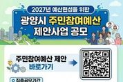 한민일보 서울포커스 임광현 기자 | 광양시는 시민이 예산 편성 과정에 직접 참여할 수 있도록 6월 30일까지 ‘2027년 예산 반영 주민참여예산 제안사업’을 집중 공모한다고 밝혔다. 이번 공모는 예산 과정에 다양한 계층의 참여를 확대하고, 시민이 일상에서 느끼는 불편 사항과 지역 발전을 위한 아이디어를 시정에 반영하기 위해 마련됐다. 제안 분야는 ▲청년 희망 및 중장년 행복 기반 조성 ▲여성 안전 및 어르신 건강 도시 지향 사업 ▲안전하고 쾌적한 도시 조성 등 시정 전반이다. 다만 특정 단체나 개인 지원을 목적으로 하거나 이미 시행 중인 사업, 타 기관 소관 사업 등은 제외된다. 참여 대상은 광양시민을 비롯해 지역 내 기업체 임직원, 기관·단체, 학교 구성원 등이다. 신청은 광양시 누리집 또는 ‘주민e참여’를 통한 온라인 접수와 함께, 주소지와 관계없이 가까운 읍면동사무소 또는 광양시청 기획예산실을 방문하거나 우편(광양시 시청로 33, 2층 기획예산실), 전자우편으로도 가능하다. 접수된 제안은 관련 부서의 타당성 검토와 주민참여예산위원회 심의를 거쳐 예산안에 반영되며, 이후