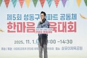 한민일보 서울포커스 임광현 기자 | 서울 성동구는 지난 11월 1일 살곶이체육공원에서 성동구 아파트 단지들이 한자리에 모여 ‘제5회 아파트공동체 한마음 체육대회’를 성황리에 개최했다. 올해로 5회째를 맞는 이번 체육대회는 성동구 아파트공동체 활성화단체 연합회(성아공 연합회)가 중심이 된 아파트공동체 한마음 체육대회 추진위원회 주관으로 진행됐으며, 성동구청과 각 아파트 공동체 활성화단체가 협력하여 원활한 행사 진행을 지원했다. 성동구가족센터, 옥수종합사회복지관 등 관내 복지시설에서는 다양한 체험부스 등을 운영했다. 체육대회는 관내 32개 아파트에서 약 650명의 입주민이 참여하여, 각기 다른 아파트 단지 주민들이 4개의 팀을 이뤄 협력과 경쟁을 즐기는 방식으로 진행됐다. 참가자들은 풍선 기둥 만들기, 한마음 공굴리기 등 가족과 이웃들이 함께 즐길 수 있는 스포츠 종목에 참여도 하고, 입주민 장기 자랑, 아이들을 위한 키즈존, 푸드트럭 등 다양한 볼거리, 먹을거리 등으로 즐거운 시간을 보냈다. 특히, 이번 체육대회는 단순히 스포츠를 즐기는 것을 넘어, 아파트 단지 내 주민들 간의 유대감을 깊게 만드는 기회가 됐다.