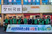 한민일보 서울포커스 임광현 기자 | 서순천라이온스클럽(회장 강성원)은 지난 10일 순천시 왕조1동 소재 정신요양시설인 인선원 입소자들을 대상으로 ‘사랑의 음식나눔’ 봉사활동을 펼쳤다. 이번 봉사에는 서순천라이온스클럽에서 인선원 입소자 100여 명을 지역 중식당 ‘만리향’으로 초대해 다양하고 푸짐한 중식 요리를 제공했다. 이날 국제라이온스협회 윤정호 총재가 직접 참석해 봉사자들을 격려했다. 윤 총재는 “서순천라이온스는 지역의 가장 가까운 곳에서 손길을 내미는 이웃이 되겠다”며 라이온스의 의미를 되새겼다. 강성원 회장은 “매년 인선원에 함께 음식을 나눌 수 있어 기쁘다”며 “날씨는 급격히 쌀쌀해졌지만 마음만은 따뜻하게 느끼셨으면 좋겠다”고 전했다. 왕조1동 관계자는 “매년 잊지 않고 우리동을 찾아 따뜻한 식사를 대접해 주셔서 감사드린다”며 “이웃에게 필요한 곳에 먼저 다가가는 봉사문화가 지역 공동체를 더욱 건강하게 만든다”고 말했다. 한편 서순천라이온스는 2020년부터 매년 사랑의 음식봉사를 하고 있으며, 지역의 복지시설 등에 소규모 수리‧수선 봉사활동을 꾸준히 이어오고 있다.