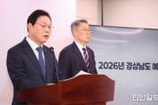 한민일보 서울포커스 임철현 기자 | 경상남도는 13일 오전 도청 프레스센터에서 열린 브리핑을 열고, 2026년도 예산안을 전년 대비 1조 8,118억 원(14.5%) 늘어난 14조 2,845억 원으로 확정했다고 발표했다. 이날 박완수 도지사는 “2026년도 예산안은 재난·재해 등 위기 대응 능력을 강화하고, 도민행복시대 시책을 안정적으로 추진하며, 미래성장 기반을 다지는 데 중점을 뒀다”고 밝혔다. 이어 “현장에서 만난 도민의 다양한 목소리를 반영한 체감형 사업에 예산을 우선 배분했다”며 “14조 원 규모의 예산이 도민의 행복과 지역경제 활력의 마중물이 될 것”이라고 강조했다. 박 지사는 또 “부동산 시장 불안 등으로 자체 세입은 제자리걸음 수준이지만, 정부예산안에 반영된 국비가 11조 원을 돌파하면서 국고보조금이 대폭 증가했다”고 설명했다. 세입예산은 △국고보조금 8조 4,324억 원(59.0%), △지방세 수입 3조 8,050억 원(26.6%), △지방교부세 1조 801억 원(7.6%) 등으로 구성됐으며, 국고보조금이 절반 이상을 차지한다. 경남도는 혁신적 예산편성을 위해 ‘예산편성점검단’을 운