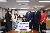 한민일보 서울포커스 임철현 기자 | 경상남도미래교육재단은 꿈사랑생태유치원(원장 배경미)에서 ‘아이좋아 통장사업’ 후원금 570여만 원을 기탁했다고 밝혔다. ‘아이좋아 통장사업’은 저소득층 가정의 학생들이 안정적으로 대학에 진학하고 사회에 진출할 수 있도록 돕는 사업이다. 재단은 매년 고등학교 1학년을 선정해 학생 가정과 1:1로 매칭한 뒤, 3년간 매월 6만 원씩 적립·지원하는 방식으로 사업을 운영하고 있다. 이번 기탁금은 꿈사랑생태유치원이 지난 6월 개최한 ‘아나바다 장터’ 행사를 통해 마련했다. 유치원 밖 교육공동체가 참여한 이번 행사는 합리적 소비와 자원 순환의 가치를 체험할 수 있는 기회를 제공했으며 지역 연계 기관들의 재능 기부로 진행된 버스킹 공연 등도 함께 열려 지역 축제의 장으로 꾸며졌다. 꿈사랑생태유치원 배경미 원장은 “아이들이 지역사회와 함께 어울리며 나눔의 의미를 배울 수 있는 소중한 경험이었다”라며, “행사 수익금을 도움이 필요한 학생들에게 기부하게 되어 매우 기쁘다”라고 밝혔다. 경남미래교육재단 박종훈 이사장은 "유치원 아이들이 고사리손으로 형, 누