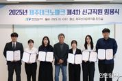 한민일보 서울포커스 임철현 기자 | 제주테크노파크(원장 지영흔, 제주TP)가 1일 제주벤처마루 9층 회의실에서 6명의 신규직원에게 임명장을 수여했다. 이번 신규직원은 지난 6월 실시된 제주특별자치도 공공기관 통합공채에 따른 채용이다. 제주TP는 통합공채를 통해 기업육성과 바이오, IT 분야, 우주항공, 경영지원 등 제주 주축산업과 미래 신산업 육성에 필요한 지역인재 10명을 모집했다. 그 결과 기업육성을 위한 사업기획을 비롯해 용암해수 활용과 생산장비 운영, 빅데이터센터와 관련한 미래신산업, 경영지원 분야에서 6명이 채용됐다. 제주TP는 매년 제주특별자치도에서 실시하는 공공기관 통합채용에 참여하며 청년일자리 창출에 기여하고 있다. 현재 제주TP는 정책기획단과 기업지원단, 청정바이오사업본부 산하 바이오센터와 생물종다양성연구소, 용암해수센터, 미래융합사업본부 산하 미래산업센터와 에너지센터에 정규직 146명 포함 188명의 전문직이 근무하고 있다. 한편 제주TP는 중소벤처기업부와 제주특별자치도의 지원‧감독을 바탕으로 산학연관 협력네트워크를 구축하고, 지역 특성에 맞는 산업발전 전략과 정책의 수립, 연구