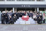 한민일보 서울포커스 전희주 기자 | 의왕시가 새중앙교회로부터 크리스마스를 맞아 어려운 이웃을 돕기 위한 생필품 꾸러미 ‘사랑의 천사박스’ 1,004상자(약 4,000만 원 상당)를 기부받았다고 밝혔다. 시청 본관 앞 광장에서 열린 전달식에는 새중앙교회 황덕영 담임목사와 나문성·박재관 목사, 이칠수·신종범·김경화 장로 등 새중앙교회 관계자들이 참석해 따뜻한 나눔의 뜻을 함께했다. 새중앙교회 황덕영 담임목사는“크리스마스를 맞아 소외된 이웃들에게 사랑을 전하고자 하는 성도들의 마음을 모아 사랑의 천사박스를 준비했다”며“이 작은 정성이 어려운 이웃들에게 위로가 되고, 따뜻한 겨울을 보내는 데 도움이 되기를 바란다”고 말했다. 방경미 복지문화국장은“해마다 변함없이 나눔을 실천해 주시는 새중앙교회와 성도 여러분께 깊이 감사드린다”며“시에서도 소외되는 이웃이 없도록 지역사회를 더욱 세심하게 살피고, 촘촘한 복지 지원에 최선을 다하겠다”고 밝혔다. 한편, 이날 기부된 생필품 꾸러미는 경기사회복지공동모금회에 기탁 처리된 후, 관내 저소득층 가구에 전달될 예정이다.