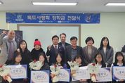 한민일보 서울포커스 전희주 기자 | 의왕시청소년재단은 12월 4일 의왕시청소년수련관에서 (사)영토지킴이 독도사랑회 의왕지회와 함께 청소년 장학금 전달식을 진행했다. 이날 전달식에는 독도사랑회와 재단 관계자, 장학금 수혜 청소년 6명이 참석했다. 의왕시청소년재단과 독도사랑회 의왕지회는 지난 7월 8일 광복 80주년 기념 ‘디지털 독도체험관’을 공동 운영하며 협력의 기반을 마련한 바 있다. 이번 장학금 전달은 이러한 협력의 연장선상에서 이뤄졌으며, 독도사랑회 의왕지회는 지난 백운예술제 부스 운영을 통해 발생한 수익금 200만 원을 청소년 장학금으로 기탁했다. 전용복 회장은 “이번 전달식은 지역사회가 청소년의 성장을 위해 뜻을 모으는 의미 있는 자리”라며, “앞으로도 청소년의 교육·문화·성장을 지원하는 다양한 협력 사업을 의왕시청소년재단과 함께 추진하겠다”고 밝혔다.