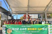 한민일보 서울포커스 전희주 기자 | 의왕시 부곡동주민자치위원회가 11월 14일 부곡동주민센터에서 자매결연지 괴산 소수면의 대표 농산물 중 하나인 괴산절임배추 직거래 행사를 개최했다. 이날 직거래 장터는 사전 주문을 통해 이뤄졌으며, 이 자리에서 부곡동 주민들은 소수면의 질 좋은 절임 백추 120여 박스를 전달받았다. 심장섭 부곡동 주민자치위원장은 “친환경 자재로 사용한 절임 배추를 제공받아 매우 고맙게 생각한다”며 “앞으로도 자매결연지와 돈독한 우호관계를 유지하고 상생발전을 위한 긴밀한 관계를 이어가겠다”고 말했다. 김기선 소수면 주민자치위원장은 “소금값 등 원자재 가격이 올라 김장철 배추가격에 걱정이 많았다”며 “좋은 가격으로 배추를 제공할 수 있어 기쁘고, 자매결연지에 대한 따뜻한 관심으로 배추를 구매해 주신 부곡동주민자치위원회와 지역 주민들께 감사드린다”고 말했다.