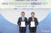한민일보 서울포커스 전희주 기자 | 여주시의회가 2025년 추진한 ‘여주시 중복규제 개선 정책연구’ 보고서를 집행부에 전달하여 향후 규제개선 추진을 위한 협력 기반이 마련됐다. 여주시의회는 3월 27일 오전 시장실에서 '여주시 중복규제 개선 정책연구' 최종보고서 전달식을 개최했다고 밝혔다. 이날 전달식에는 이충우 여주시장을 비롯한 집행부 관계자와 여주시의회 박두형 의장, 연구수행기관 관계자 등이 참석해 연구결과를 공유하고 정책 반영 방안을 논의했다. 이번 연구는 여주시의회 의원연구단체인 '여주시 중복규제 개선 정책 연구모임'이 주관해 2025년 6월부터 약 6개월간 수행됐으며, 수도권정비계획법과 한강수계법 등 중첩 규제로 인한 지역 발전 제한 문제를 분석하고 합리적인 개선 방안을 도출하는 데 목적을 두고 추진됐다. 여주시의회 박두형 의장은 “연구단체 보고서 전달은 중복규제 개선을 위한 실질적인 출발점이라는 점에서 의미가 있다”며 “연구 결과가 효과적인 정책으로 이어질 수 있도록 집행부의 적극적인 검토를 당부한다”고 말했다. 이충우 여주시장은 “환경부 등 관계기관에 실효성 있는 규제 개선을 적극 건의