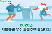 한민일보 서울포커스 진광성 기자 | 광주광역시 서구가 관내 100세대 이상 공동주택 204개소를 대상으로 ‘2026년 자원순환 우수 공동주택 경진대회’를 개최한다. 서구는 올바른 분리배출과 음식물쓰레기 감량 문화 정착을 위해 2013년부터 경진대회를 추진해 오고 있다. 서구는 올해 3월부터 10월까지 ▲음식물류 폐기물 감량실적(70점) ▲폐건전지·폐형광등 수거 실적(10점) ▲재활용품 분리배출 실태(10점) ▲자원순환 실천 주민 참여도(10점) 등을 종합적으로 평가해 오는 11월 우수 공동주택 10곳을 선정하고 총 2000만원의 포상금을 차등 지급할 계획이다. 참여를 희망하는 공동주택은 3월13일까지 서구청 누리집 공지사항의 관련 서류를 준비해 서구청 자원순환과에 방문하거나 전자우편 등으로 제출하면 된다. 서구는 3월 중 참여자 대상 사업설명회를 열어 경진대회 추진 절차와 실적 평가 기준 등 자원순환 실천 방안을 안내할 예정이다. 이판구 자원순환과장은 “자원순환 우수 공동주택 경진대회를 통해 주민 참여를 기반으로 자원순환 실천 문화가 지속적으로 확산될 수 있도록 노력하겠다”고 말했다.