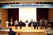 한민일보 서울포커스 진광성 기자 | 수원특례시의회는 2월 27일 호매실장애인종합복지관에서 열린 '수원시장애인복지단체연합회 제7대 회장 취임식'에 참석해 새로운 출발을 축하했다. 이날 행사에는 보건복지위원회 이희승 위원장(더불어민주당, 영통2·3·망포1·2), 인사청문특별위원회 윤경선 위원장(진보당, 평·금곡·호매실), 박현수 국민의힘 교섭단체대표(국민의힘, 평·금곡·호매실)를 비롯해 유재광 의원(국민의힘, 율천·서둔·구운·입북), 정영모 의원(국민의힘, 영화·조원1·연무), 사정희 의원(더불어민주당, 매탄1·2·3·4), 김경례 의원(더불어민주당, 비례대표), 홍종철 의원(국민의힘, 광교1·2), 이대선 의원(더불어민주당, 율천·서둔·구운·입북)도 함께했으며, 장애인단체 관계자와 내·외빈 200여 명이 참석한 가운데 내빈 축사와 축하공연, 기념촬영 등이 진행됐다 제7대 회장으로 취임한 이종갑 회장은 앞으로 3년간 연합회를 이끌며 장애인단체 간 협력과 권익 증진 활동을 추진할 예정이다. 수원시장애인복지단체연합회는 지역 내 장애인 단체들이 참여하는 협의체로, 복지 정책 건의와 현장 의견 전달 창구 역할을 맡고 있다.