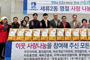 한민일보 서울포커스 진광성 기자 | 지난 11일, 수원시 권선구 세류2동은 설 명절을 맞이하여 사랑 나눔 전달식을 개최했다. 이날 마련된 후원 물품은 취약계층 약 379 가구에 직접 전달될 예정으로 지역사회에 사랑이 전해지는 명절이 될 것으로 기대된다. 이번 전달식에는 세류2동 주민자치회, 통장협의회, 새마을부녀회, 새마을문고, 바르게살기위원회, 자유총연맹, 체육진흥회, 방위협의회, 지역사회보장협의체 등 9개 단체의 단체장과 ㈜대일실업, ㈜광신이 참여했다. 이와 함께 MG세화새마을금고, ㈜에코월드, 영광광고기획 등 지역 내 여러 기관과 개인 후원자의 사랑 나눔도 더해져 행사에 의미를 더했다. 변영호 세류2동장은 “어려운 시기에 지역사회 관심으로 사랑 나눔에 참여해 주신 단체(기관)에 감사드리며, 앞으로도 유관 기관과 적극 협력으로 행복과 웃음이 피어나는 정겨운 세류2동을 만들기 위해 최선을 다하겠다”라고 말했다.