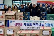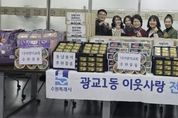 한민일보 서울포커스 진광성 기자 | 영통구 광교1동은 지난 2월 11일, 설 명절을 앞두고 관내 단체와 기관의 따뜻한 나눔이 이어지는 가운데 ‘설 명절 이웃나눔 전달식’을 개최했다고 밝혔다. 광교1동에 따르면, 이번 전달식에는 동남용역이 후원한 햄 40세트와 시립광교동어린이집에서 정성껏 준비한 생필품 꾸러미 40박스가 전달됐다. 또한 광교1동 지역사회보장협의체에서 마련한 후원금과 광교1동 공동모금회를 통해 준비된 떡국떡, 전, 나물, 과일 등 명절 음식도 함께 전달돼 뜻깊은 의미를 더했다. 특히 이번 나눔은 기업과 보육기관, 지역 복지단체가 한마음으로 참여해 설 명절을 앞두고 소외되기 쉬운 이웃들에게 따뜻한 정을 전하며 지역사회에 훈훈한 분위기를 조성했다. 광교1동은 이날 전달된 성금과 물품을 저소득 가정과 취약계층, 홀몸 어르신 등 도움이 필요한 이웃들에게 전달해 따뜻하고 풍성한 설 명절을 보낼 수 있도록 지원할 예정이다. 송숙영 광교1동장은 “설 명절을 맞아 어려운 이웃을 위해 소중한 정성을 모아주신 모든 분들께 깊은 감사의 말씀을 드린다”며, “전달받은 성금과 물품은 꼭 필요한 이웃들에게 정성