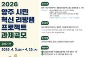 한민일보 서울포커스 차재만 기자 | 양주시가 시민이 일상에서 겪는 사회문제를 직접 발굴하고 해결 방안을 모색하는 ‘2026년 양주 시민 혁신 리빙랩 프로젝트’ 공모를 오는 23일까지 진행한다. 이번 공모는 시민 참여를 기반으로 지역사회 문제 해결 방안을 도출하기 위해 마련됐다. 양주시에 거주하거나 직장·학교 등 생활권을 둔 시민이면 누구나 참여할 수 있다. 참여는 주제안자를 포함한 4인 이상으로 구성된 팀 단위로 가능하며, 공감토크(현장심사)와 과제 선정 이후 진행되는 워크숍, 성과공유회(12월 예정) 등에 참여해야 한다. 공모 주제는 청소년·청년, 탄소중립, 도시재생, 1인 가구, 반려동물 문화, 디지털 격차 등 지역사회가 직면한 다양한 사회문제 해결과 관련된 아이디어다. 접수된 제안은 사회적 가치와 효과성·창의성, 실현 가능성 등을 기준으로 제안심사실무위원회 심사와 공감토크 현장심사를 거쳐 최종 과제로 선정된다. 최종 선정된 2개 팀은 5월부터 11월까지 약 7개월간 퍼실리테이터(활동촉진자)와 함께 워크숍에 참여하며, 문제 정의부터 개선 방향 도출, 시범사업 추진까지 단계별 프로젝트