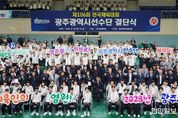 한민일보 서울포커스 최성훈 기자 | 광주광역시체육회(회장 전갑수)가 26일 오후 2시 빛고을체육관에서 ‘제106회 전국체육대회 광주선수단 결단식’을 열어 대회 필승을 위한 각오를 다졌다고 밝혔다. 이날 행사에는 전갑수 체육회장, 김영문 광주시 문화경제부시장, 서용규 광주시의회 부의장, 이정선 광주시교육감을 비롯한 종목단체 회장, 임원, 육성학교장 등 관계자 400여 명이 참석해 광주시 대표선수단의 선전을 기원하며 격려했다. 행사는 사전공연, 전국체전 참가계획 보고, 대표선수 훈련영상 시청, 선수단기 수여, 선수대표 선서, 응원 메시지 및 격려금 전달 등의 순으로 진행됐다. 이날 선수 선서에는 육상 이재성(광주시청)과 양궁 오예진(광주여대 4년)이 함께 나서 선수단을 대표해 필승 결의를 다졌다. 광주선수단은 이번 부산 전국체전에서 육상 남자 400m 계주(광주시청) 5연패에 도전한다. 또 지난해 제105회 체전에서 대회 4관왕에 오른 육상 고승환과 한국 근대5종 간판 전웅태(이상 광주시청)가 국가대표로서의 기량을 선보인다. 역도 국가대표 손현호(광주시청)와 여고부 농구 강호 수피아여고 등도 출전해 시‧도 종합득점