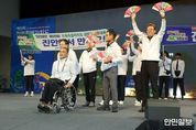 한민일보 서울포커스 최성훈 기자 | 전북 고창군이 26일 오후 고창군립체육관에서 ‘제19회 전북특별자치도장애인체육대회’ 개회식을 성대하게 개최하고 본격적인 대회의 시작을 알렸다. 이번 장애인체전은 ‘행복도시 고창에서 감동가득 희망체전’이라는 슬로건 아래 28일까지 고창군 일원에서 열린다. 전북 14개 시군에서 선발된 약 2000명의 선수단과 임원이 참가해 게이트볼, 태권도, 보치아, 탁구, 론볼 등 15개 종목에서 갈고닦은 기량을 겨루며 열정과 도전의 스포츠 정신을 펼칠 예정이다. 개회식은 고창군을 대표하는 장애인 문화예술단체 디새온의 가야금과 하모니카 연주로 화려하게 막을 올렸으며, 14개 시군 선수단의 입장식이 힘차게 진행됐다. 이어 고창군장애인체육회 정종만 부회장의 개회선언과 심덕섭 고창군수의 환영사, 주요내빈의 축사가 이어지며 대회의 열기와 감동을 더했다. 대회기 게양, 선수·심판 대표 선서 등 공식행사도 차례로 진행됐으며 인기가수 윤수현과 최재명의 축하무대도 관람객의 큰 호응을 이끌어내며 개회식 분위기를 한층 고조시켰다. 심덕섭 고창군수는 “이번 대회는 장애인 체육 발전은 물론