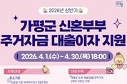 한민일보 서울포커스 최성훈 기자 | 가평군이 신혼부부의 주거비 부담을 줄여주기 위해 대출이자 지원에 나선다. 군은 ‘2026년 상반기 신혼부부 주거자금 대출이자 지원사업’을 실시하고, 오는 4월 1일부터 30일까지 신청을 받는다고 밝혔다. 신청은 거주지 읍면 행정복지센터를 방문하거나 경기도 일자리재단 통합접수시스템을 통해 가능하다. 이번 사업은 2025년 하반기(7월~12월)에 납부한 전세 또는 매입자금 대출이자를 대상으로 가구당 최대 150만원까지 지원하는 내용이다. 지원 대상은 가평군에 거주하는 혼인신고일 기준 7년 이내 신혼부부로, 기준 중위소득 200% 이하에 해당해야 한다. 군은 가평군 소재 주택의 전세 또는 매입 자금 용도로 금융기관에서 대출을 받은 약 100가구를 선정해 지원할 계획이다. 군 관계자는 “신혼부부 주거자금 대출이자 지원사업을 통해 주거 부담을 덜고 안정적인 지역 정착을 돕겠다”며 “앞으로도 신혼부부를 위한 다양한 혜택을 확대하는 방안을 지속적으로 마련하겠다”고 말했다.
