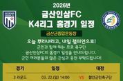 한민일보 서울포커스 최성훈 기자 | 금산인삼에프씨는(FC)는 2026 시즌 케이(K)4리그 안방 사수를 위한 홈경기 일정을 전격 안내에 나섰다. 이번 안내는 군민들이 미리 경기 관람 계획을 세우고 가족·지인과 함께 경기장을 찾을 수 있도록 돕기 위해 마련됐다. 주요 일정 및 상대팀은 △3월 29일 제천시민축구단 △4월 11일 서산에프씨(FC) △5월 2일 기장군민축구단 △5월 31일 거제시민축구단 △6월 21일 진천케이알에프씨(KRFC) △7월 25일 서울중랑축구단 △8월 30일 진주시민축구단 △9월 5일 평택시티즌 △10월 10일 남양주시민축구단 △10월 31일 세종에스에이(SA)축구단 등이다. 홈경기는 군민들의 관람 편의를 위해 주말 오후 시간대에 집중적으로 배치됐다. 구단은 매번 홈경기마다 다채로운 이벤트와 공연, 지역 특산물 홍보 부스 등을 운영해 금산종합운동장을 단순한 경기장을 넘어선 군민 화합과 소통의 광장으로 만들 예정이다. 구단 관계자는 “선수들에게 가장 큰 힘은 관중석을 가득 메운 군민 여러분의 뜨거운 함성”이라며 “확정된 홈경기 일정을 꼭 확인하셔서 경기장을 찾아주시고