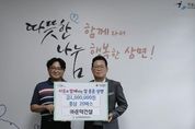 한민일보 서울포커스 최성훈 기자 | ㈜한수코퍼레이션은 최근 설악면 행정복지센터를 찾아 과채주스 52박스(140만 원 상당)를 기탁했다. 전달식에서 이세진 대표는 “㈜한수코퍼레이션은 예비사회적기업으로서 지역사회와 함께 사회적 가치를 실현한다는 책임감을 갖고 있다”며 “이번 기부를 계기로 앞으로도 나눔 활동을 지속적으로 펼쳐 나가겠다”고 밝혔다. 이동철 설악면장은 “지역사회를 위해 따뜻한 마음을 전해준 ㈜한수코퍼레이션에 깊이 감사드린다”고 말했다.