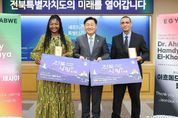 한민일보 서울포커스 최성훈 기자 | 전북특별자치도가 아프리카 스포츠 부처 고위 관료들에게 도민증을 수여하며, 국제 스포츠 도시로서의 위상 강화에 나섰다. 김관영 도지사는 4일 도청 회의실에서 아프리카 짐바브웨 에밀리 제사야 국회의원 겸 스포츠․문화부 차관과 이집트 아흐메드 아즈미 사이드 청소년․스포츠부 차관에게 전북사랑 도민증을 수여했다. 이번 수여는 재외동포를 제외한 순수 외국인 대상으로는 첫 사례다. 두 차관은 앞으로 아프리카를 포함한 전 세계에 전북을 홍보하고 국제 스포츠 개최 최적지임을 알리는 글로벌 외교 동반자 역할을 수행하게 된다. 도는 지난 9월 국제외교 협력 강화를 위해 아프리카 나미비아와 짐바브웨를 방문했다. 당시 주짐바브웨대한민국대사관과 공동 개최한 '공공외교 한마당 K-페스티벌'에서 짐바브웨의 촉망받는 여성 지도자인 에밀리 제사야 차관을 만나 이달 4일부터 9일까지 원광대학교에서 열리는 '2025 익산 빅터 코리아마스터즈 배드민턴 선수권대회' 방한을 제안했다. 북아프리카에 위치한 이집트는 FIFA 산하 아프리카 축구연맹 본부가 소재하는 등 아프리카 스포츠 행정의 중추적 역할을 담