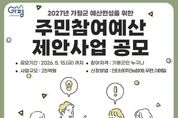 한민일보 서울포커스 최성훈 기자 | 가평군은 2027년도 예산에 반영할 주민참여예산 제안사업 공모를 3일부터 오는 5월 15일까지 실시한다. 이번 공모는 군민이 생활 속에서 필요한 사업을 직접 제안하고 예산 편성 과정에 참여할 수 있도록 하기 위한 것이다. 접수된 사업은 부서별 타당성 검토와 우선순위 선정 절차를 거쳐 2027년 본예산에 반영해 추진한다. 공모 제안사업은 △지역개발형 △생활안정제안형 △사회존중형 △문화‧체육‧관광형 △읍면제안형 등 5개 분야로 구분해 접수한다. 올해는 제도 개선 사항도 반영했다. 관광 분야의 경우 가평군민은 물론, 가평군을 방문한 외지 관광객으로까지 참여 대상을 확대했다. 또 사회존중형 분야 공모는 규모를 지난해 2억원에서 올해 총 3억원으로 늘렸다. 이는 지역개발 중심에서 벗어난 다양한 정책 아이디어를 발굴하고, 주민참여예산 참여기회를 확대하기 위한 것이다. 신청은 ‘주민e참여’ 홈페이지 온라인 접수와 가평군청 예산팀에 우편이나 팩스 전송, 읍면 행정복지센터 방문을 통해 가능하다. 군은 주민 의견이 예산 전 과정에 반영되도록 참여를 확대하고 공정하고 내