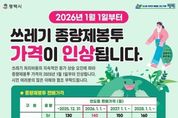 한민일보 서울포커스 황준형 기자 | 평택시는 2026년 1월 1일부터 쓰레기 종량제 봉투 가격을 3개년도에 걸쳐 인상한다. 그동안 평택시는 인구증가, 물가상승, 생활 쓰레기 수집 운반 처리비용 증가에도 불구하고 2006년 이후 종량제봉투 가격을 동결해 왔다. 시 관계자는 “현재 평택시의 종량제 가격은 경기도 31개 시군 가운데 최하위 수준이며, 청소예산 재정자립도와 주민부담률이 낮아 가격 인상은 불가피하다”고 밝혔다. 따라서, 대표적으로 일반용 종량제봉투 20리터는 현재 500원에서 110원 인상된 610원으로, 음식물 전용 봉투 1.5리터는 현재 40원에서 20원이 인상된 60원으로, 공동주택에 설치된 음식물종량제기기(RFID)는 1㎏ 단위로 현재 48원에서 12원 인상된 60원으로, 경기도 내 31개 시군 평균 가격을 반영하여 인상안을 마련했다. 다만, 서민경제의 어려움과 시민부담을 고려하여 가격 인상은 3개년도에 걸쳐 단계적으로 시행할 예정으로, 시 관계자는 “종량제봉투 가격 인상에 대한 시민 여러분의 많은 이해와 협조를 부탁드린다”며 “앞으로도 쾌적하고 청결한 도시환경 조성은 물론 질 높은