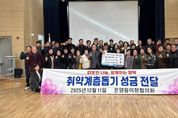 한민일보 서울포커스 기자 | 울주군 온양읍 이장협의회가 연말연시를 맞아 11일 온양읍 행정복지센터에 성금 300만원을 기탁했다. 이번에 기탁된 성금은 온양읍 지역 내 취약계층을 위한 다양한 복지사업에 활용될 예정이다. 최준식 회장은 “온양읍의 취약계층이 따뜻한 연말을 보내는데 이번 성금이 도움이 되길 바란다”고 밝혔다. 서천천 온양읍장은 “지역사회를 위한 온양읍 이장협의회의 선행에 감사드린다”며 “기탁해주신 성금은 후원 취지에 맞게 도움이 필요한 분들에게 지원하겠다”고 말했다.