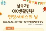 한민일보 서울포커스 기자 | 울산 동구는 오는 10월 15일 오후 2시부터 4시까지 명덕복합문화광장에서 ‘남목2동 OK생활민원 현장서비스의 날’ 행사를 개최한다. 이번 행사는 올해 여섯 번째로 열리는 OK생활민원 현장서비스의 날 행사로 주민들의 일상생활 속 불편 해소와 삶의 질 향상을 위한 다양한 분야로 구성했으며, 이번 행사 운영을 위해 자원 봉사자, 민간 기술자, 관계 공무원 등 100여 명이 참여한다. 서비스 분야는 총 9개로 주민 편익(칼갈이, 분갈이, 자전거 수리, 안경 및 귀금속 세척), 건강관리(심혈관질환, 비만예방, 치매예방), 구정 홍보(동구 SNS 홍보, 탄소중립 생활실천 홍보, 재활용 분리배출 홍보), 생활안전(심폐소생술 체험, 소화기 사용 체험), 생활경제(사회적경제 기업 제품 홍보), 생활상담(구민고충상담), 동 특화사업(가을향기 담은 캘리그라피), 재능기부(타로 심리 상담) 등이 있다. 유료 체험 부스로는 반려식물 키우기 체험이 마련되는데, 1인당 1개만 가능하며 빈 화분을 지참해야 한다. 2025년 OK생활민원 현장서비스의 날 전체 일정 및 남목2동 행사 정보는 울산 동