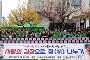 한민일보 서울포커스 기자 | 남구새마을회(회장 황병철)는 남구청 후생관 앞 주차장에서 따뜻한 손길이 더욱 필요한 동절기를 맞아 ‘사랑의 김장으로 김장담그기 행사’를 실시했다고 27일 밝혔다. 이번 행사는 26일과 27일 2일간 일정으로 소외되는 이웃이 없는 밝고 인정 넘치는 행복남구 건설을 위해 마련됐고, 남구새마을회(회장 황병철), 남구새마을협의회(회장 서병찬), 남구새마을부녀회(회장 최인순)와 회원 등 150여 명이 참여한 가운데 김장 김치를 담갔다. 서동욱 남구청장도 새마을 지도자와 함께 이웃들에게 따뜻한 정을 나누기 위한 손길을 보탰다. 이날 정성껏 담근 김장김치는 관내 독거노인, 취약계층, 다문화가정, 기초생활수급자 등 400여 세대에 복지시설에 전달할 예정이다. 황병철 남구새마을회장은 “사랑이 담긴 김장 나눔이 이웃들에게 겨울을 따뜻하게 견뎌낼 수 있는 큰 힘이 됐으면 한다” 고 말했다.
